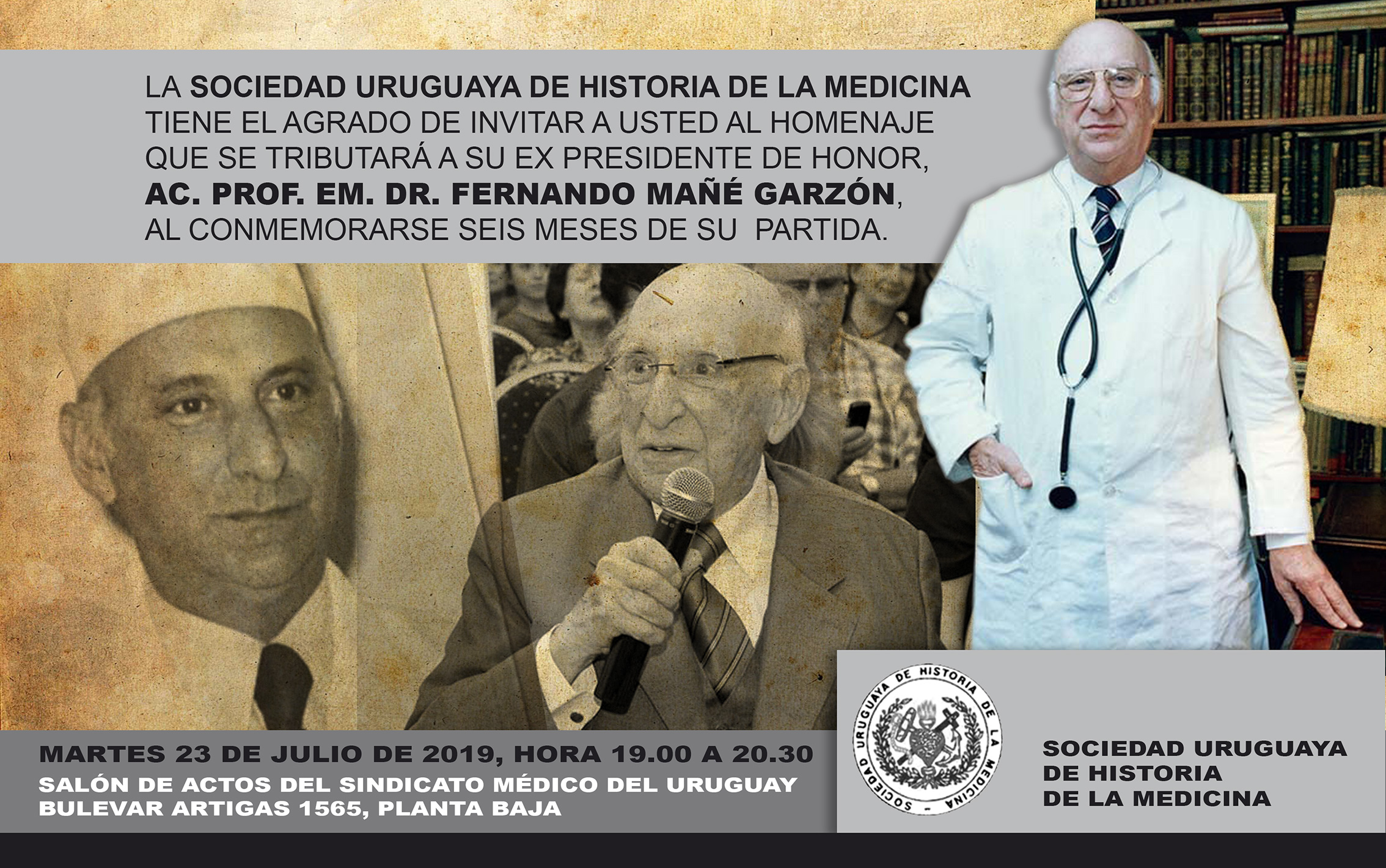Con motivo de los 6 meses del deceso del Prof. Em. Dr. Fernando Mañé Garzón, la Sociedad Uruguaya de Historia de la Medicina, le tributó un homenaje en la sede del Sindicato Médico del Uruguay, el pasado 23 de julio.